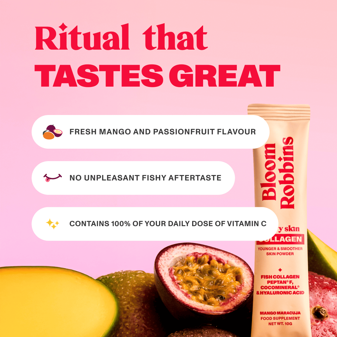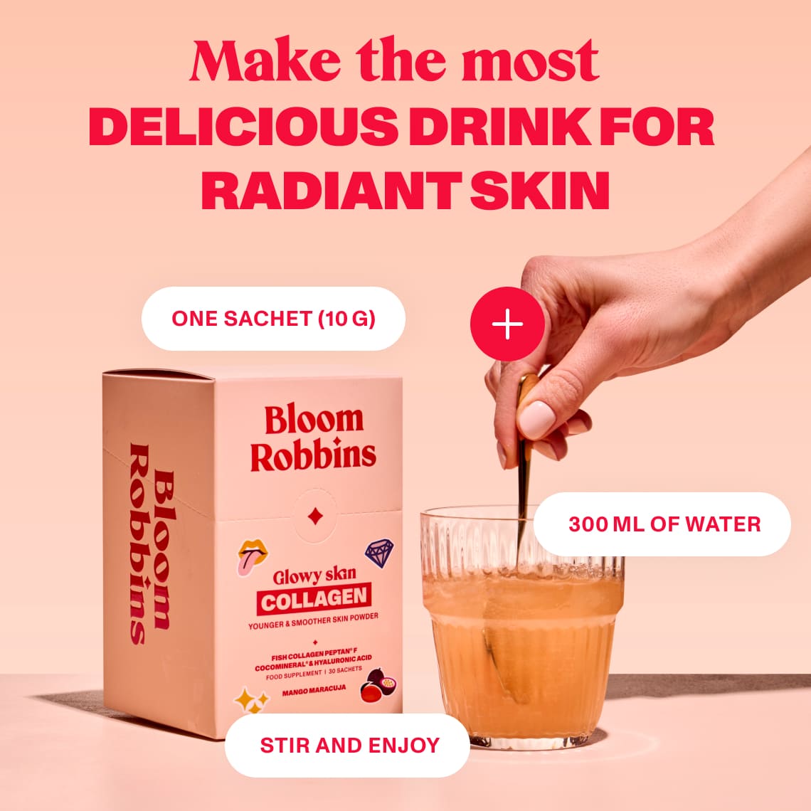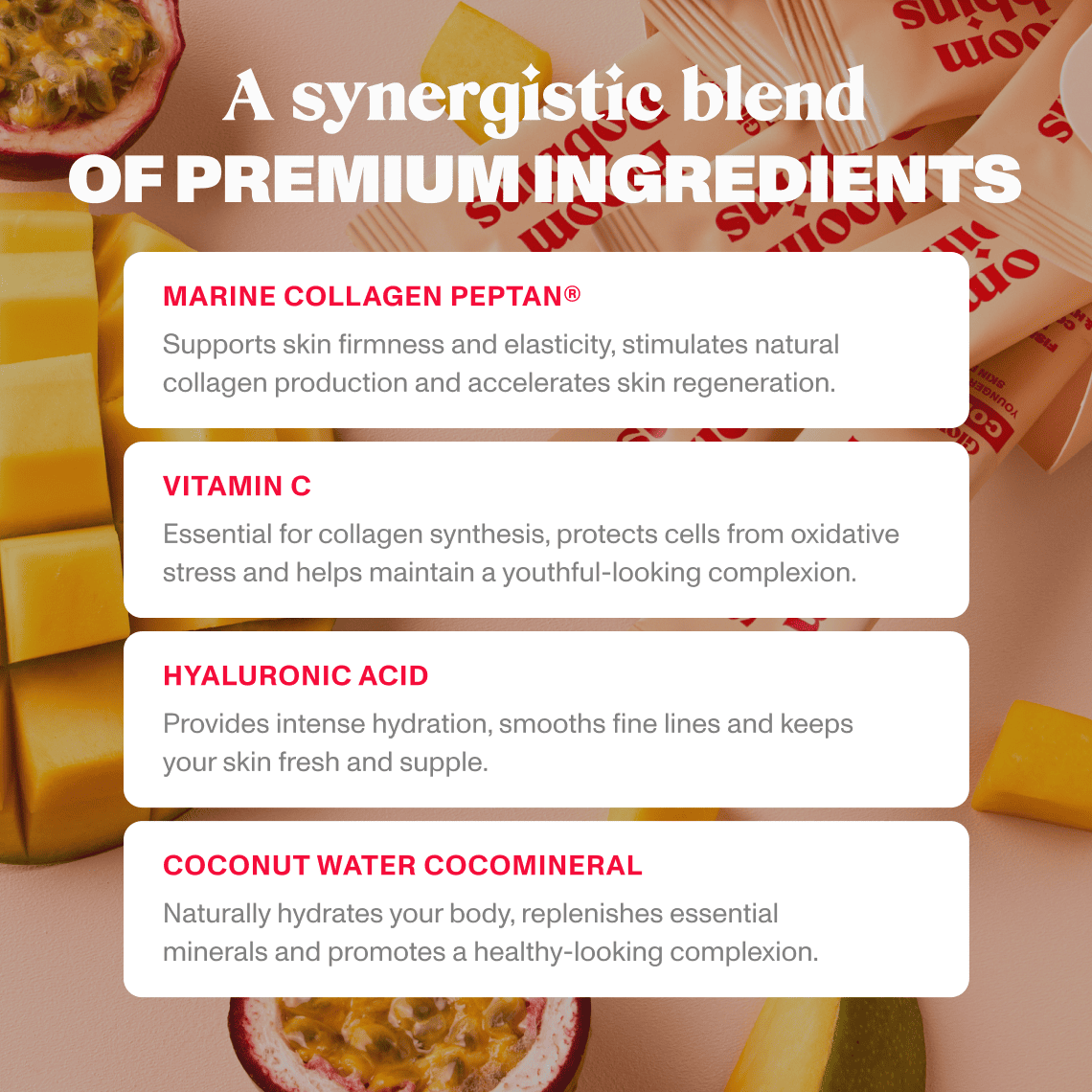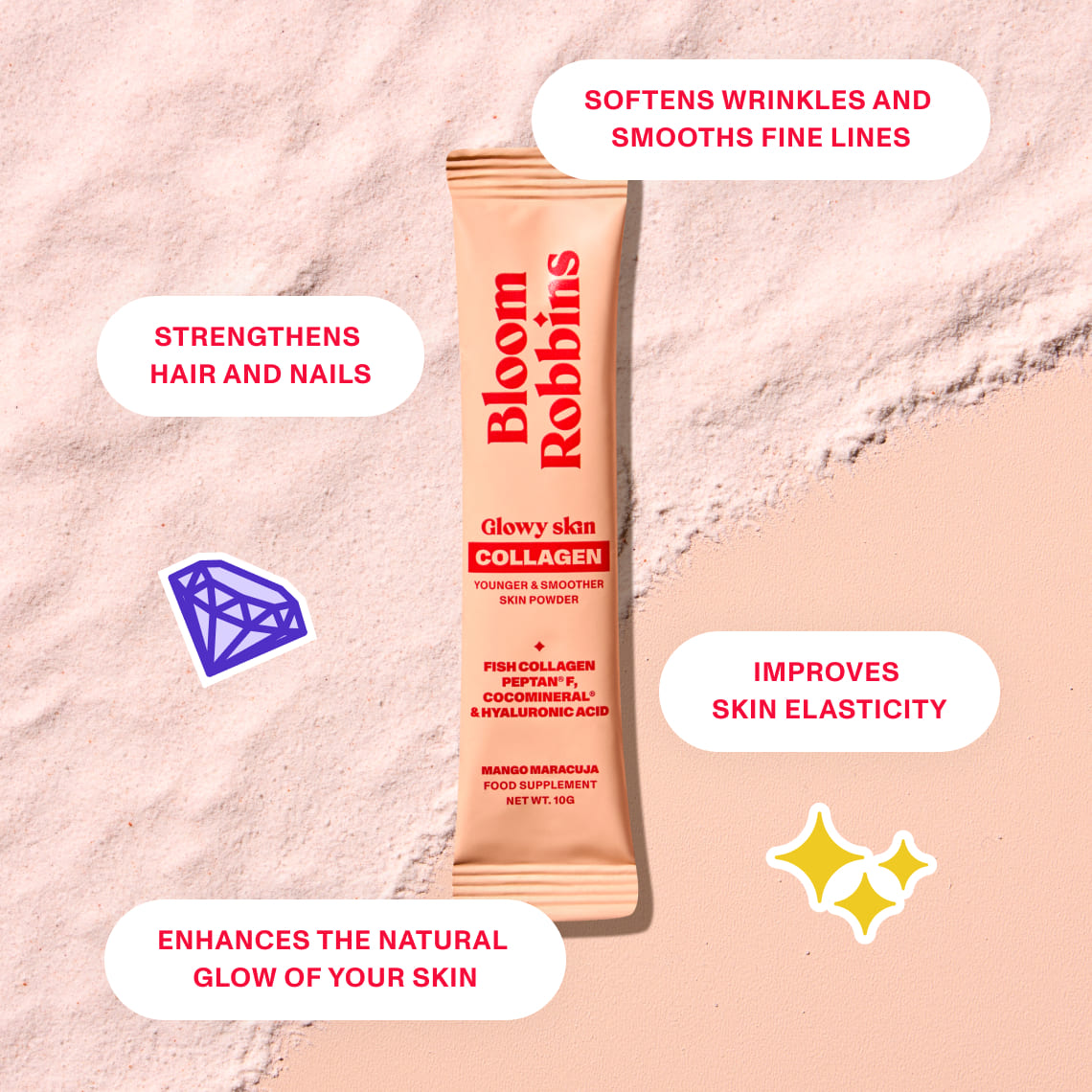 Want hydrated, radiant skin that looks fresh and youthful? Glowy Skin Collagen – YOUNGER & SMOOTHER SKIN POWDER is a beauty-boosting drink designed to support your skin from within. With its delicious mango and passion fruit flavour, you'll love it from the very first sip!
