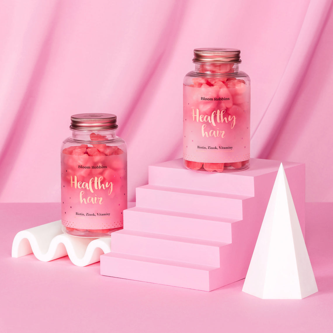 Hair gummies contain all the necessary vitamins, minerals, and substances that are essential for overall hair health, promote hair growth, reduce hair breakage and split ends, strengthen hair, add shine, and reduce hair loss and thinning.